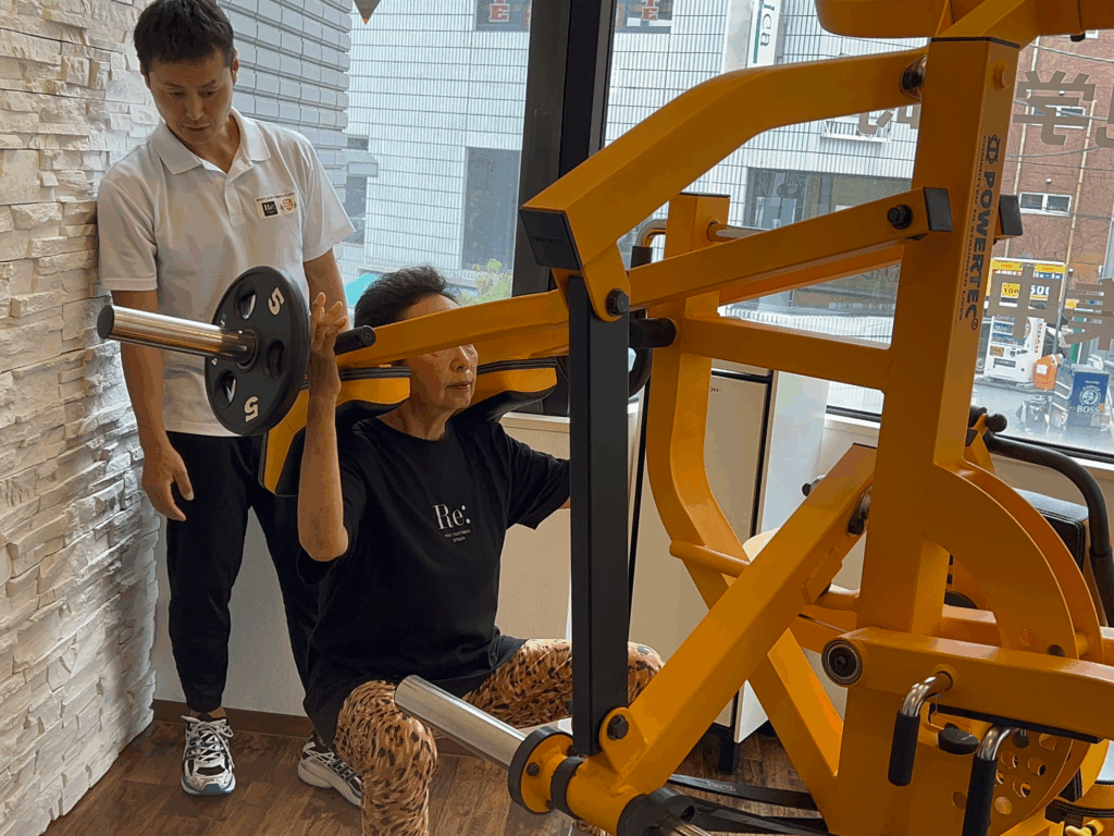 シニアの方にも安全に行えるトレーニング器具を使用して、筋力の維持・向上を行なっていきます。 筋力を維持していくことで、安定した歩行や、健康寿命に繋がる生活を送ることができます。