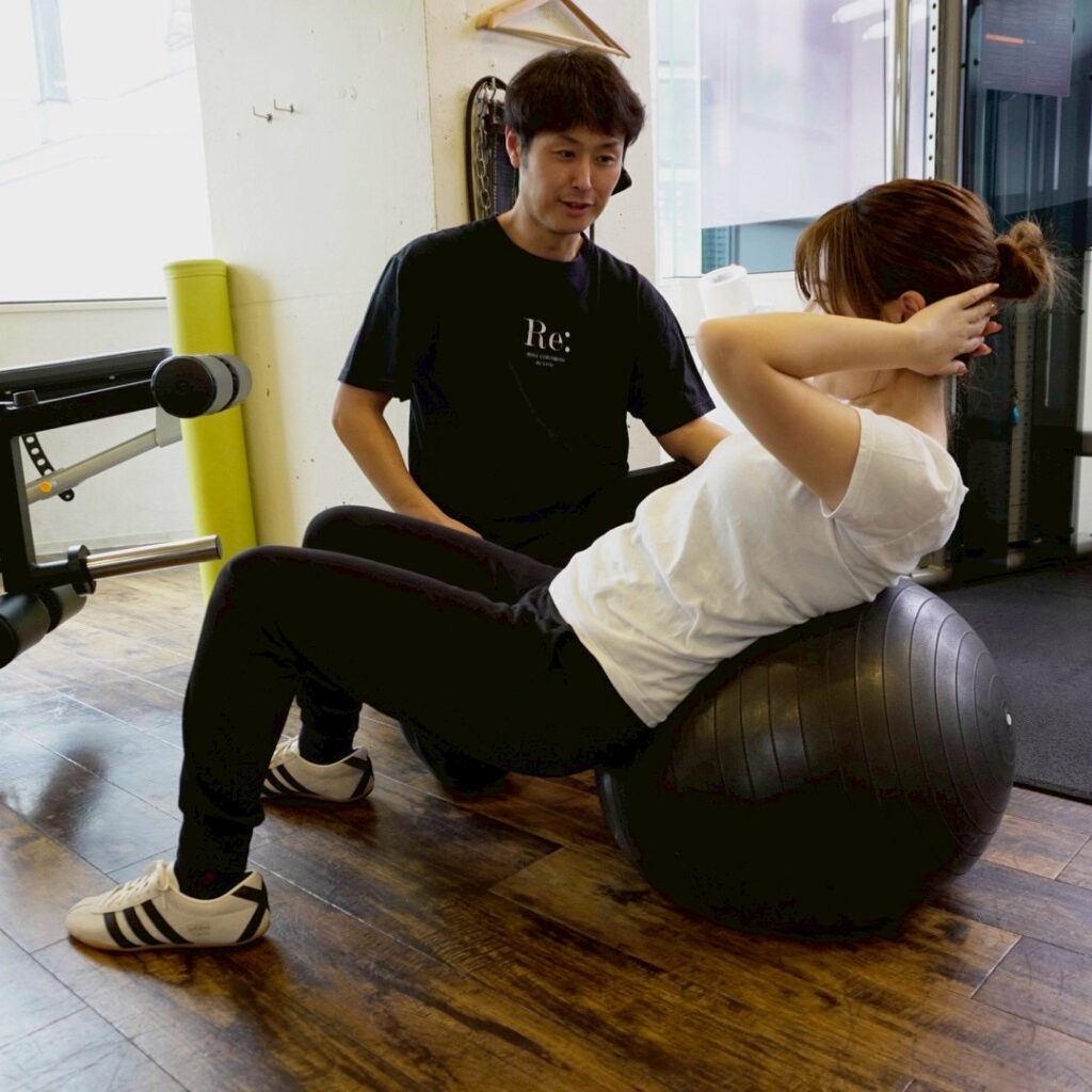 まずは、丁寧なカウンセリングを行い、お客様のトレーニングの目的や悩み、過去の運動・トレーニング歴、食生活、ライフスタイルなどを細かくヒアリングします。その後、40分程度のパーソナルトレーニングを行うことでお客様の運動能力や柔軟性、筋肉量などを確認させていただいた上で、身体の改善点や鍛えるべき部位に合わせてトレーニングメニューを作成します。
